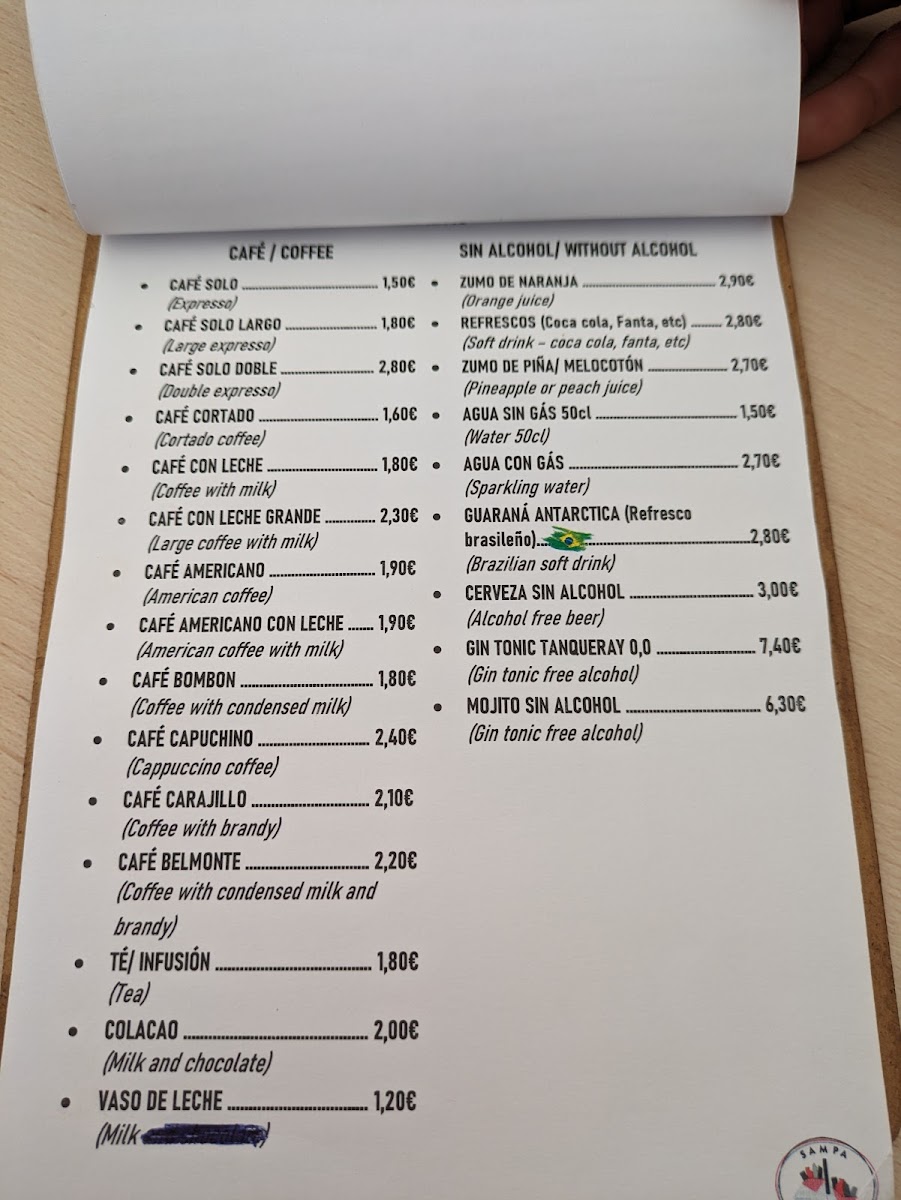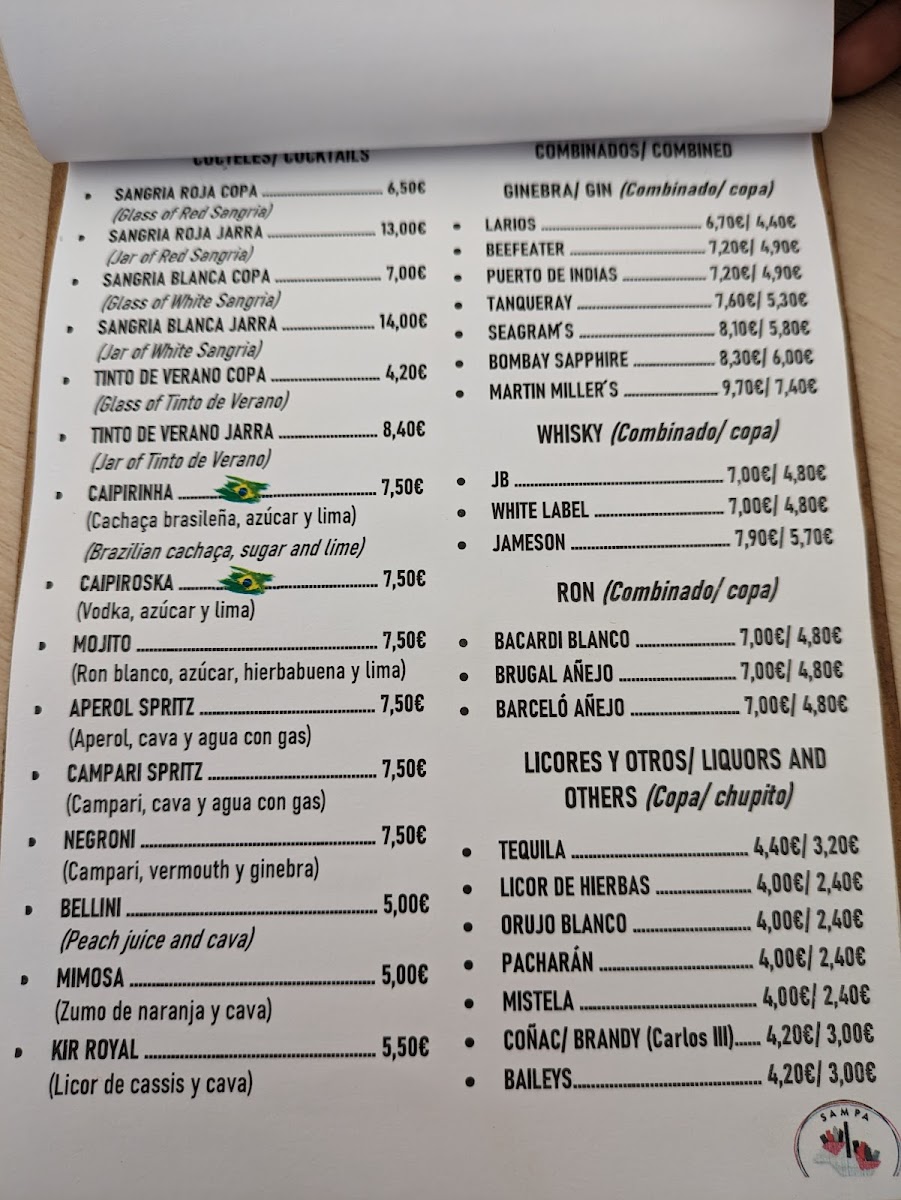 At Sampa Picnic Bar on C. Jorge Juan, 27, the menu strikes a delightful balance between traditional Spanish flavors and inventive twists. Starters like the Tortilla Española showcase perfectly cooked eggs with a tender potato base, while the Pastel de Carne Mechada delivers a rich, savory filling that melts in the mouth. Desserts such as the Tiramisu are luxuriously creamy, offering a sweet counterpoint to the savory dishes. The drinks menu complements the food effortlessly, with a refreshing Gin Tonica Especial that bursts with botanical notes and a crisp San Miguel Beer perfect for pairing with any of the bar’s offerings. Each dish and beverage demonstrates careful attention to detail, making the menu at Sampa Picnic Bar not only satisfying but also memorable for its combination of authenticity, quality, and flair.